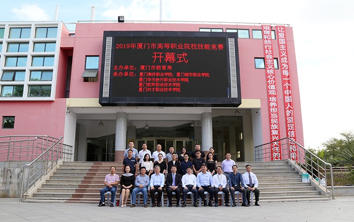 南洋社讯 今日(11月1日)上午9:00,2019年厦门市高等职业院校技能竞赛开幕式在厦门南洋学院仙岳报告厅隆重举行。厦门市教育局高教与职教处处长陈哲新,厦门南洋学院董事长、校长鲁加升,厦门兴才职业技术学院校长郝超,厦门安防科技职业学院董事长、校长陈春,南洋学院党委书记施水成,厦门城市职业学院副校长吴松青出席仪式。陈哲新处长讲话;施水成书记致辞;会议由南洋学院副校长何卫华主持。各高职院校相关负责人,相关行业协会、企业代表,裁判员代表和师生代表参加开幕式。