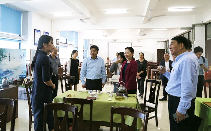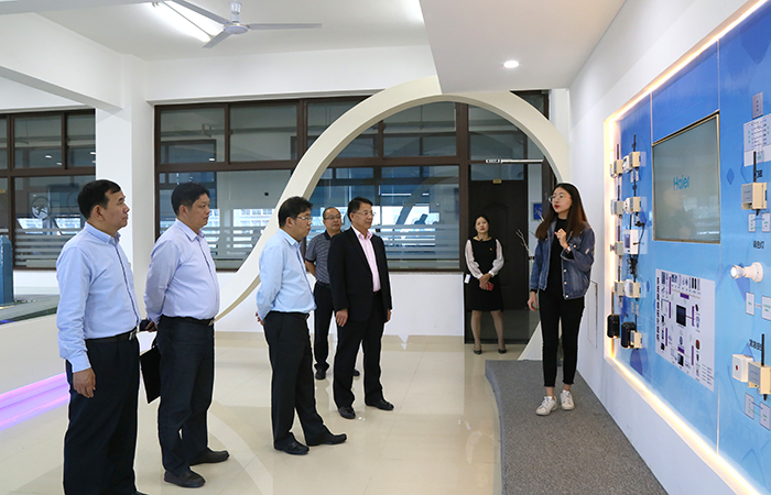 党课之前,张文斌副司长一行在鲁加升董事长、施水成书记的陪同下,先后参观了科研实训大楼、学生创业活动中心、图书馆,对学校优美整洁的校园环境,设施齐全的实训大楼表示赞叹。