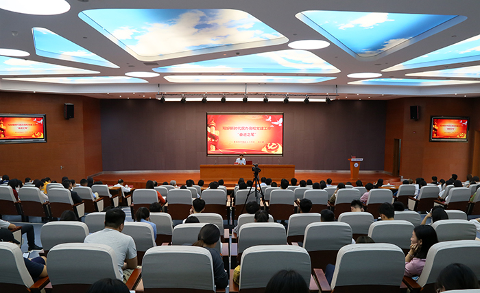 座谈之后,张文斌副司长在仙岳报告厅以“写好新时代民办高校党建工作‘奋进之笔’”为题,作“不忘初心、牢记使命”主题教育专题党课。他指出,习近平总书记关于教育的重要论述内涵丰富、博大精深,既根植于中华民族崇文重教的优良传统,又体现了中国特色社会主义进入新时代的鲜明特征,是马克思主义基本原理与中国教育实践相结合的重大理论结晶,是习近平新时代中国特色社会主义思想的重要组成部分,为加快推进教育现代化、建设教育强国提供了强大思想武器和行动指南。他要求全体参会人员要深入学习贯彻习近平总书记关于教育的重要论述和在全国教育大会、学校思想政治理论课教师座谈会上的重要讲话精神,切实增强全面贯彻党的教育方针的政治自觉,增强优先发展教育事业的思想自觉,增强推动教育高质量发展的行动自觉。