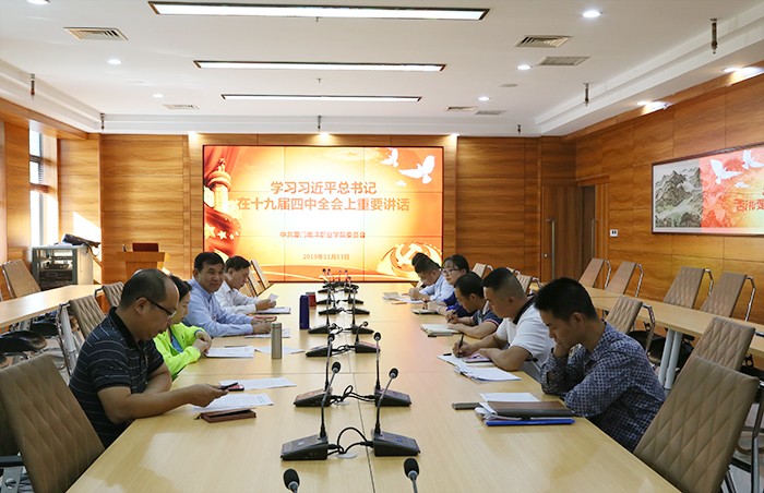 南洋社讯 今日(11月13日)上午9:00,厦门南洋学院党委理论学习中心组(扩大)在第一会议室召开专题学习会议,集中学习习近平总书记在党的十九届四中全会上的重要讲话。党委书记施水成出席并主持会议;党委委员、各党总支负责人、中心组全体成员参加会议。