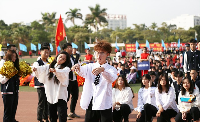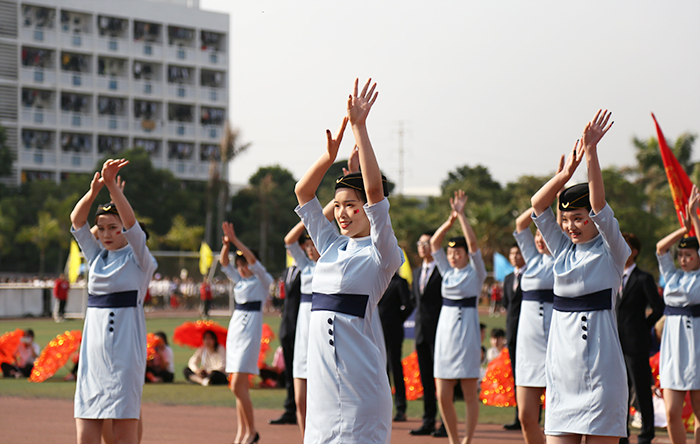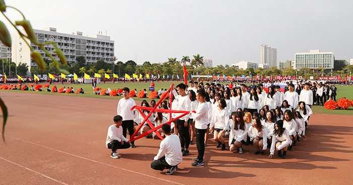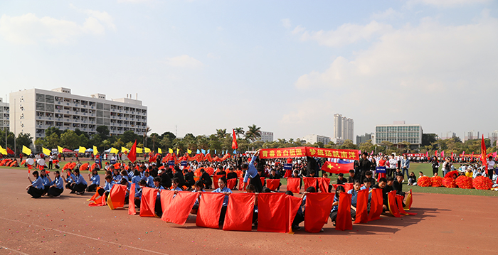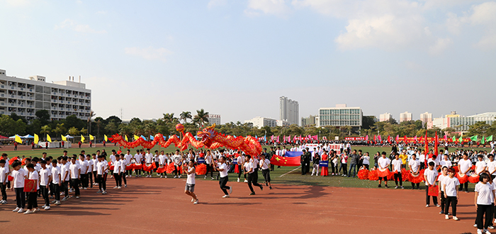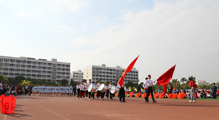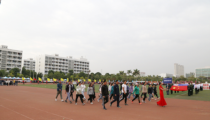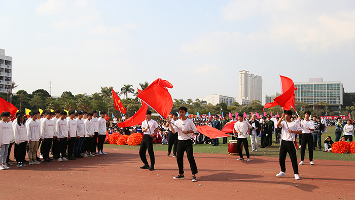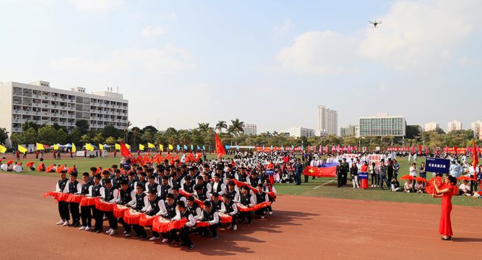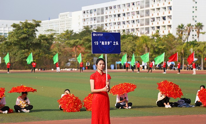 伴随着雄壮的运动员进行曲,鲜艳的国旗队引领着校旗队缓缓走过主席台,彩旗花束方阵紧随其后,将田径场装点得五彩缤纷。18个由各学院学生、裁判、教师组成的方阵踏着铿锵的节奏,迈着坚定的步伐,气宇轩昂、意气风发,依次走过主席台接受检阅。本届运动会各个方阵在入场秀上脑洞大开,用天马行空的创意展现班级魅力,为新中国成立七十周年献礼。形式多样、个性张扬、精彩纷呈:有在衣服上玩创意的;有在道具上拼新意的;有戴着卡通面具玩花样的;有团体表演活力十足舞蹈《燃烧我的卡路里》《野狼Disco》的;有挥舞红旗合唱《我的中国心》的。酷炫无人机、消防机器人、灵活手指舞、舞龙舞狮、复古前卫舞蹈等花式入场轮番上演、博足眼球,充分展示了各学院的特色和南洋师生奋发拼搏、积极向上的精神面貌。