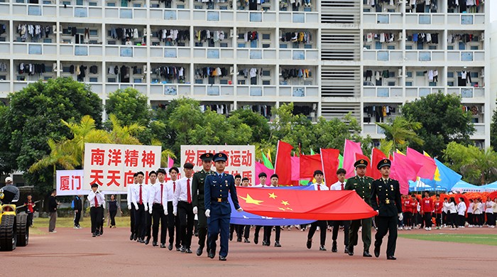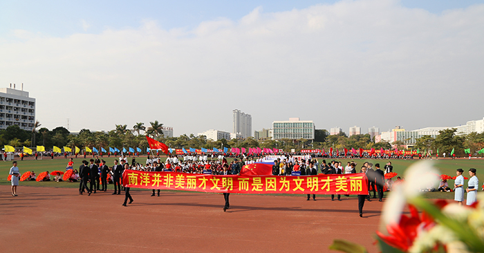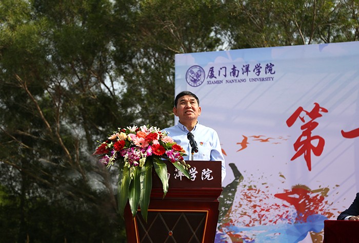 南洋社讯 今日(11月14日)上午,厦门南洋学院第十四届田径运动会开幕式在田径运动场举行。党委书记施水成,副校长张东宏、何卫华及老领导范骏义出席开幕式。施水成书记致开幕词,何卫华副校长主持仪式。相关部门负责人、全校师生参加开幕式。