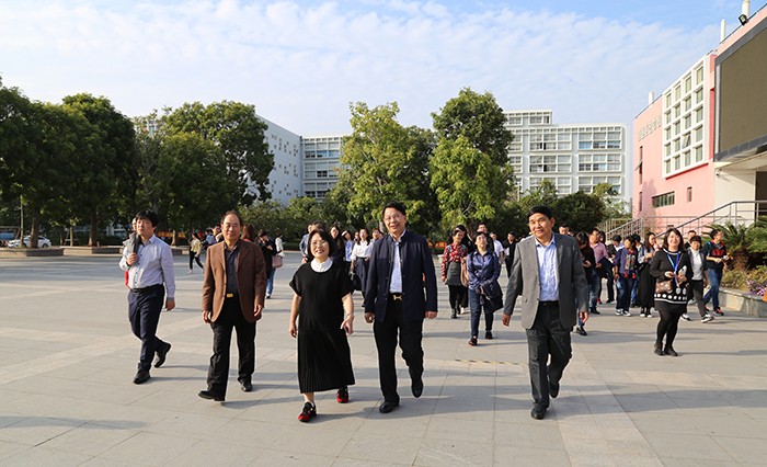 在仙岳报告厅,康乃美常务副校长对李敬来理事长一行表示热烈欢迎,并简要介绍了我校的办学基本情况、主要办学成绩、人才培养模式等。李敬来理事长对我校的热情接待表示感谢,并指出在实地参观了解后,对我校在党建思政工作、校园文化建设、校企合作和产教融合等方面的一些具体做法以及取得的显著成效感到惊叹,表示不虚此行、大有收获,这些经验将对他们学校的建设发展有着巨大的学习借鉴意义。