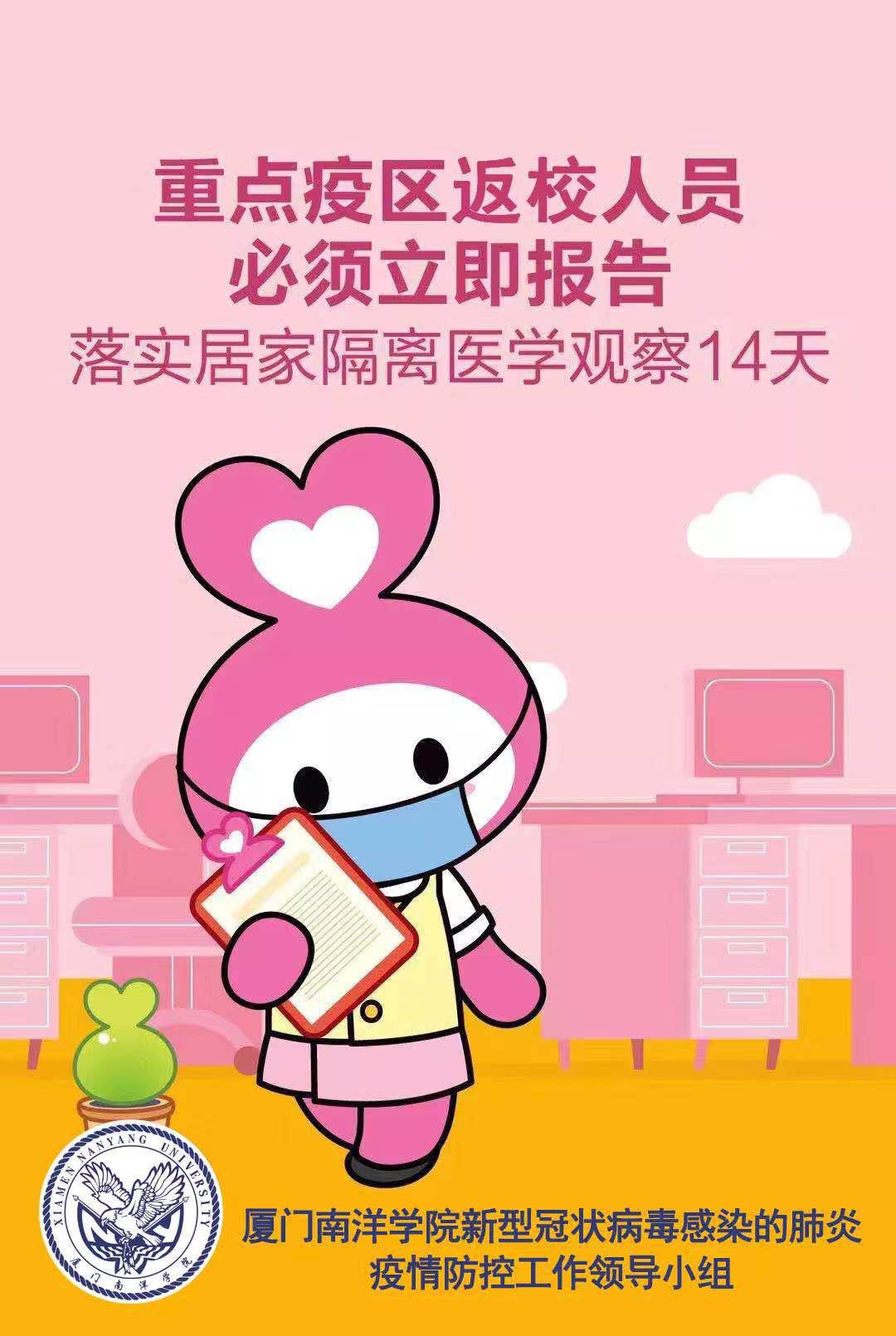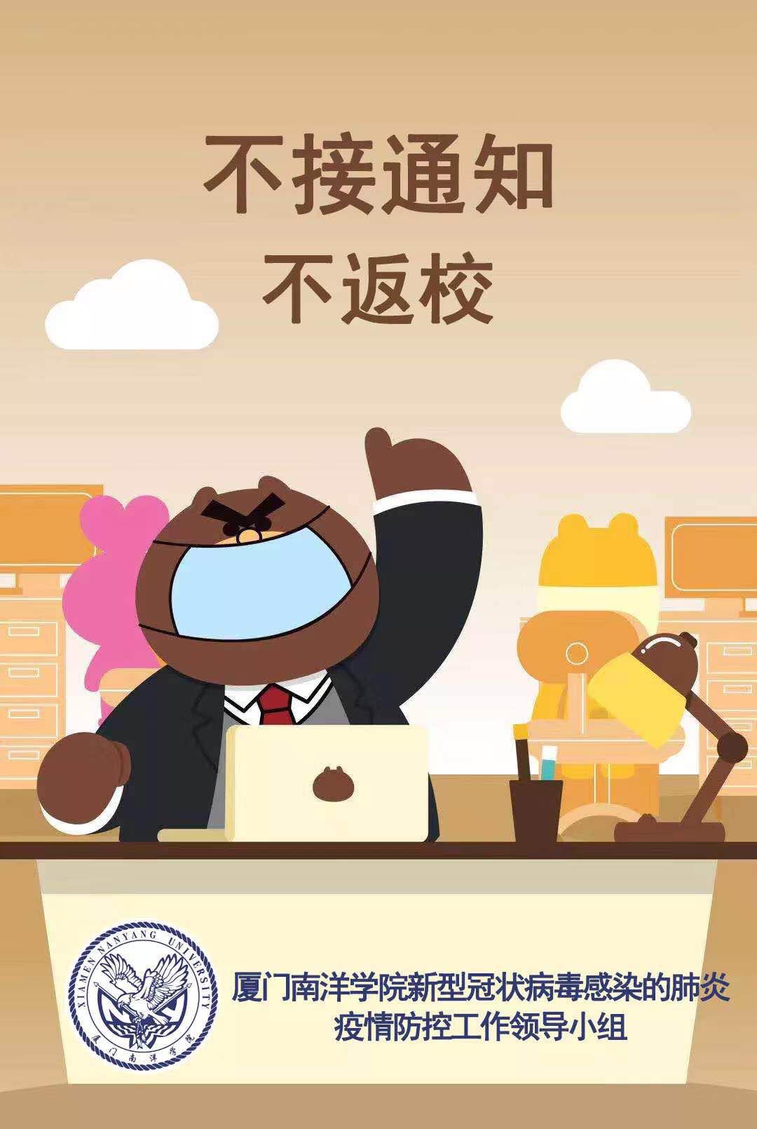 七、积极参与募捐,助力抗击疫情 “千山万水、血脉相连”湖北省的疫情牵动着每一位南洋人的心,我校设立了“厦门南洋职业学院援鄂专项爱心基金”,希望通过捐款表达我校对奋战在最前线的医务工作者的崇高敬意,表达我们对所有重点疫区群众的支持和鼓励。请同学们伸出援助之手,积极参与学校慈善募捐活动,尽绵薄之力为疫区人民多添一打口罩,为医护人员再添一层防护衣。