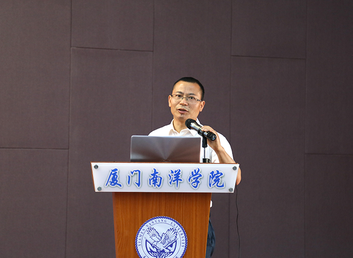发布会上,校长助理兼教务处处长钟石根通过系统化布局双师型教师队伍建设、项目化推进双师型教师队伍建设、分类化培养双师型教师队伍建设等三方面简要介绍了南洋学院基本情况,指出教师队伍是发展职业教育的第一资源,是支撑新时代国家职业教育改革的关键力量。建设高素质“双师型”教师队伍是加快推进职业教育现代化的基础性工作。学校在全省高校中率先成立“党委教师工作部”,校行政设立教师发展中心,不断加强师德师风建设和职业能力提升,通过实施“四有”好老师红专发展规划,推进产教融合、政校行企合作、校校企合作人才培养模式改革,规划设计并组织实施教学名师工程、南洋学者计划、企业副院长配置、双师型教师认定、新教师一对一帮扶、青年教师教学技能竞赛、课程思政教学竞赛、校内学术讲座遴选、教师素质拓展等众多项目,体系化布局、项目化推进、分类化培养,不断推动双师型教师队伍建设迈向新高度。
