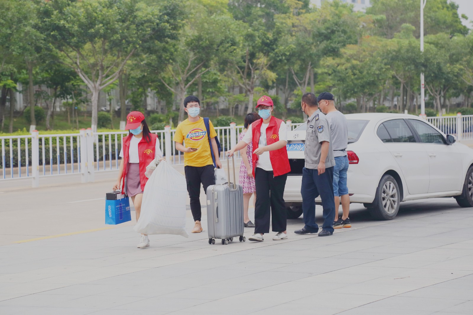 伴着清晨的微光,工作人员、志愿者们早早地上岗,等候首批返校的学生。为确保同学们顺利、平安返校,学校做了充足的准备,从各大车站的接站,到校门口的消毒、检测与查验,再到宿舍二次身份登记和体温检测,各领导、行政人员、辅导员、教师,主动请缨,冲锋在前,为返校学生保驾护航。