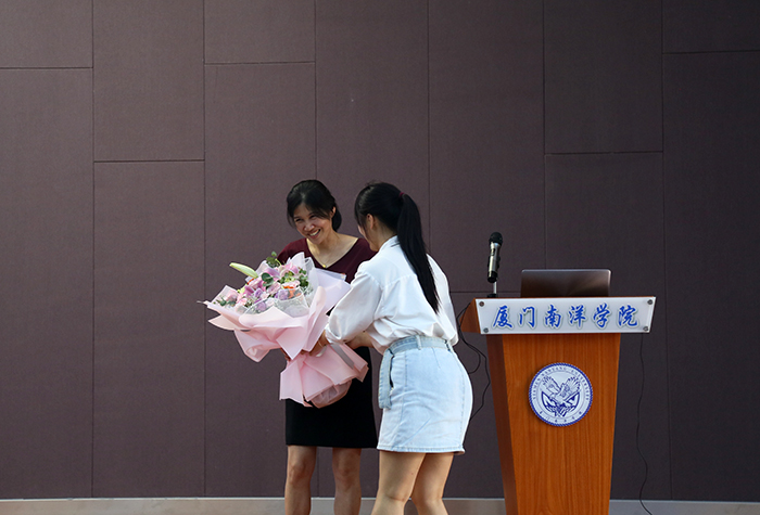 表彰大会后,赴武汉抗疫英雄黄辉萍为全校党员师生作了《你们的安全,我们来守护》专题讲座。讲座同时通过钉钉、抖音进行现场直播。黄辉萍是厦门大学附属第一医院感染管理部,传染性疾病控制主任医师,义无反顾驰援武汉的她,还是两个孩子的妈妈,穿上白大褂,想到的就是责任和担当。作为厦门援鄂医疗一队第八临时党支部书记,同队友一起尽心竭力为人民服务,争分夺秒用自己的努力挽救更多的生命,最美逆行者的感人事迹深深打动了每位聆听者,热烈的掌声、芬芳的鲜花表达对英雄崇高的敬意。董事长、校长鲁加升代表全校师生、全体校友向英雄致敬,他动情地说:中国共产党99年的光辉历史,正是由一代又一代在平凡岗位上默默无闻奉献的英雄书写。号召大家学习英雄奉献、担当精神和不畏艰险的勇气与毅力,努力学习工作,是对英雄们最好的回报。