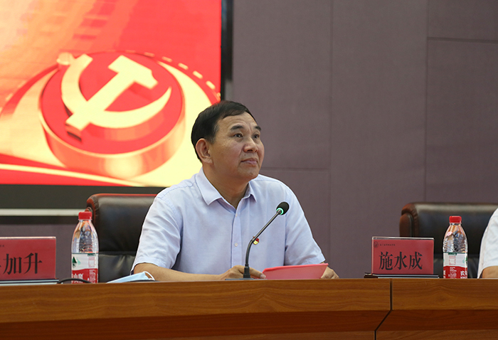 党委书记施水成代表学校党委,向受表彰的先进集体和先进个人表示热烈的祝贺,向全校各级党组织和广大教职工党员、学生党员致以节日的问候。一年来学校各级党组织、广大共产党员和全体教职员工开拓创新、团结协作、顽强拼搏取得了喜人成绩。尤其是今年面对突如其来的疫情,党员担当作为、冲锋在前,勇夺防疫和发展双胜利。施水成书记号召全校各级党组织和广大党员要学习先进、赶超先进、争当先进,立足本职,努力工作,再创佳绩。