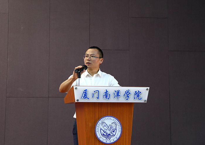 副校长钟石根代表厦门南洋职业学院党政领导和师生员工对校会双方的友好合作、签约共建表达最美好的祝福,他表示,只要双方秉持“优势互补、资源共享、共同发展” 合作原则,融合职业技能和职业素养,礼仪教育事业必将蓬勃发展,南洋培训基地的前景必将璀璨夺目。