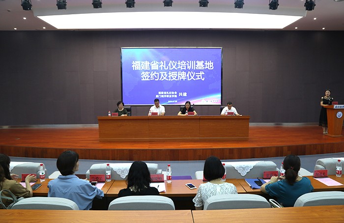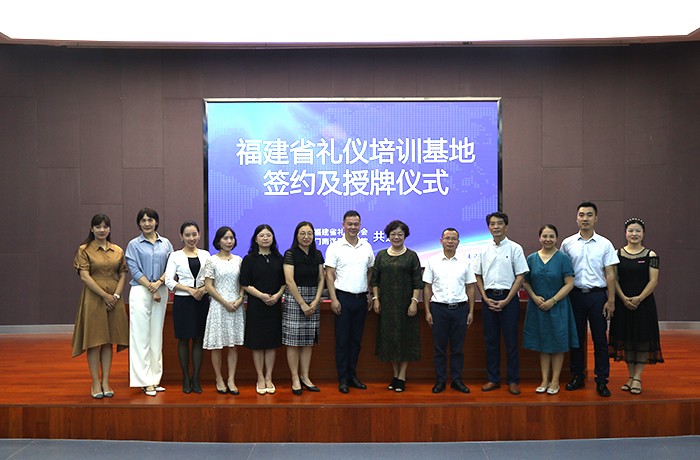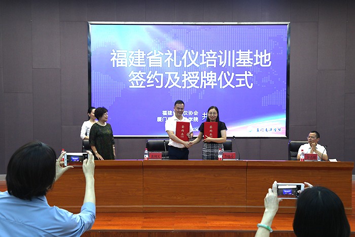 2020年7月8日上午10点,福建省礼仪协会与我校共建“福建省礼仪培训基地”签约及揭牌仪式在仙岳报告厅成功举行,该省级培训基地正式落户我校。福建省礼仪协会副会长郑耀星、福建省文明礼仪培训基地办公室主任、福建省礼仪协会副会长兼秘书长黄利天、厦门南洋职业学院副董事长鲁晓芹、厦门南洋职业学院副校长钟石根出席本次签约及揭牌仪式。