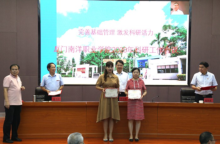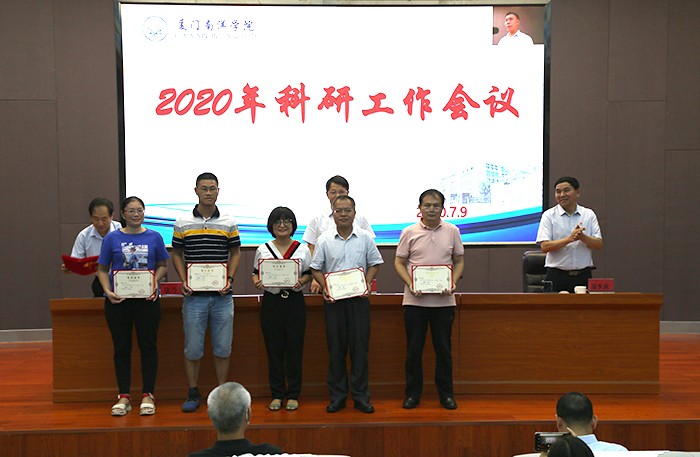 会议对2019年度科研工作先进集体和先进个人进行表彰。其中,外国语与旅游学院、经济管理学院、人文社科学院荣获集体奖;孔佩伊等6人荣获论文奖;聂素丽等3人荣获科研项目奖;王莉等2人荣获专利奖;杨天松等三人荣获著作奖。