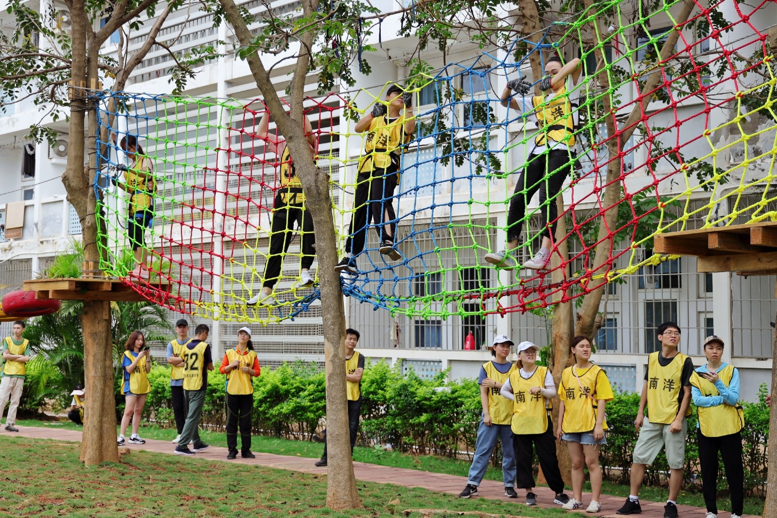 南洋素质拓展基地位于厦门南洋学院校内东南侧,基地主营业务为学生研学、军事训练、拓展培训等,目前基地投入使用的一期项目占地面积约7000平方米,同时可容纳500人活动,设置有综合训练场、陆地拓展场、野战训练场,同时拥有九项大型基建固定式项目和三十余项移动式组织类拓展项目。