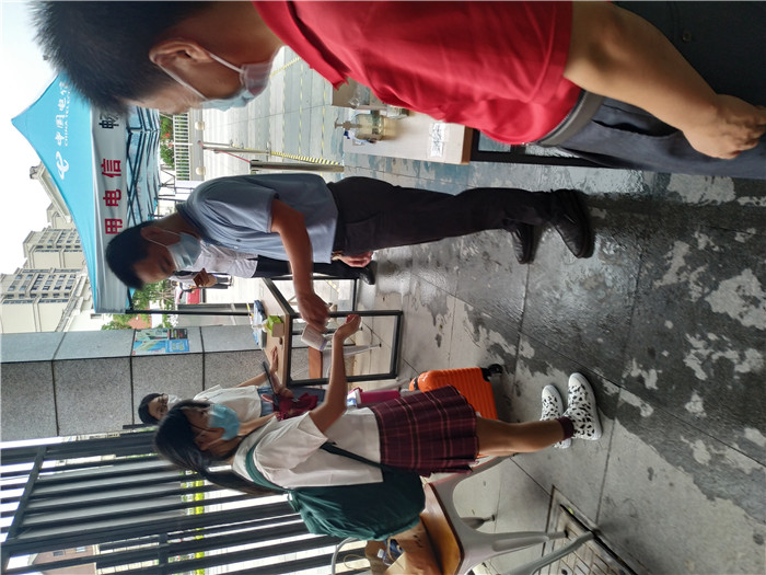 今天一大早,艺术设计学院的辅导员郭锦霖就带着艺术学院的学生干部在厦门北站迎接新生的到来,早上天公不作美,接站的师生就淋着雨给新生搬行李;中午的时候又顶着大太阳,带着学生、家长休息,吃饭。
