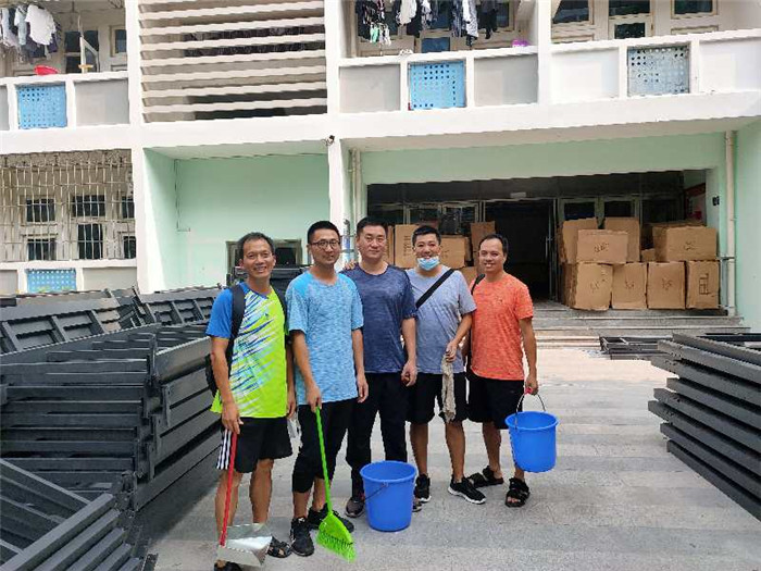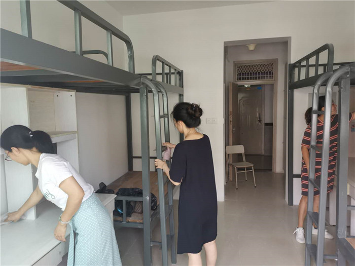 带领建工、人文学院辅导员、学生干部已连续奋战几天的项义方老师,甩掉鞋子带头干,确保新生宿舍楼道、走廊无死角。总务科的吴建琼老师,无暇照顾住院的母亲,连续几晚住在学校里方便随时处理突发的事情。木工陈贵忠师傅逐一检查、维修宿舍装备,这些抽屉、柜子都是巧手的陈师傅自己做的。