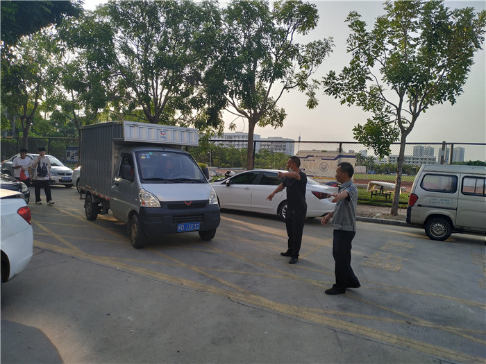 迎新工作千头万绪,各部门严阵以待。报到头一天保卫科林辉城老师带领保安同志挂条幅、贴海报、贴“闽政通”二维码、搭帐篷、画“一米间隔线”、拉警戒线、学生报到通道消毒……每一个环节亲自把关。报到当天清晨开始便坚守在学校大门口,为的就是让学生真正回到温暖的“家”。