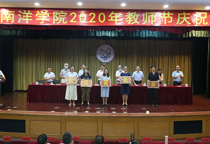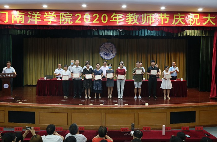9月9日,值第36个教师节来临之际,南洋学院举行2020 年教师节庆祝大会,表彰在岗位上勤奋工作、作出突出贡献的鲁小卉、郭明瑜、王冰清等3位“最美教师”、伏柃羲等18位“优秀教师”、曾艳等21位“先进工作者”、刘艳艳等2位“师德标兵”、陈荣钏等3位“优秀辅导员”、许扬坤等5位“优秀班主任”、党政办等5个“先进集体”。