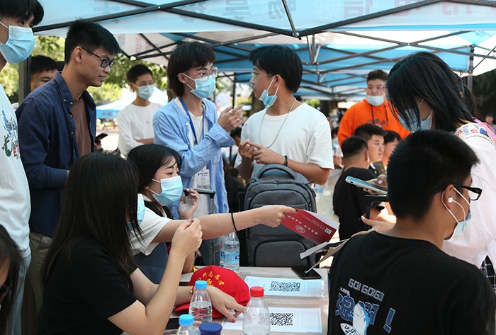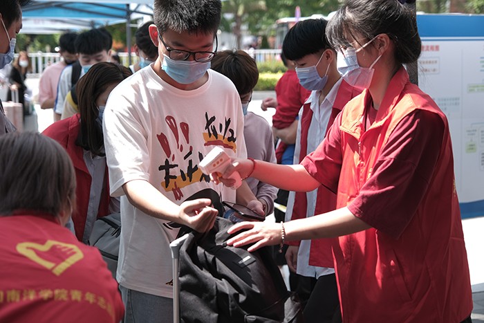 这是一次特别的报到,根据防控要求,家长送新生只能到校门口。父母止步于校门之外,牵挂却越过校门,萦绕在学子的身上。