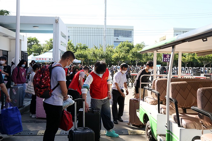 学校认真筹划,精心部署,面对家长不能进校的政策要求,各部门吹响集结号,倾情助力新同学,为新生入校“最后一米”保驾护航。他们指路、搬行李、运行李……全力当好学生平安入学的“摆渡人”,他们用热情的问候、细致的服务,让你感受到第二故乡的温暖。