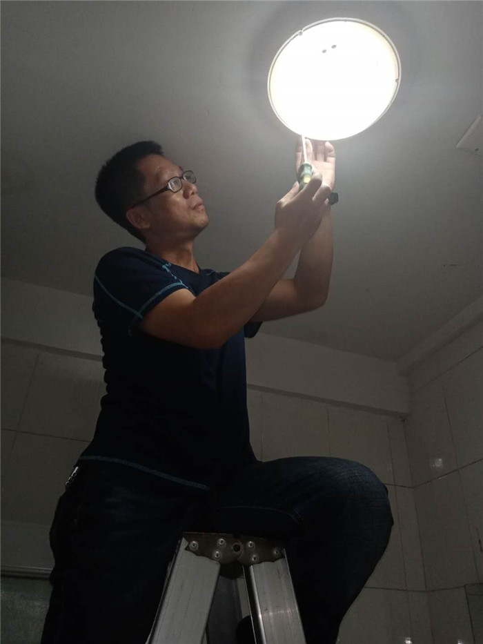 水电工陈霖师傅工作一样认真负责。他负责男生宿舍水电维修工作。男生宿舍四栋楼,工作量大,任务重。维修嘛,不知道什么时候,什么地方会出现需要维修,几乎每天四栋楼都要爬上爬下好多趟。老父亲车祸住院十七八天,一直昏迷不醒,前几天天才从江西老家县城医院转往南昌大医院救治。为了工作,他只能拜托他弟弟一家照料。他的想法就是,学校今年新生多,事情多,绝不能耽误学校工作!