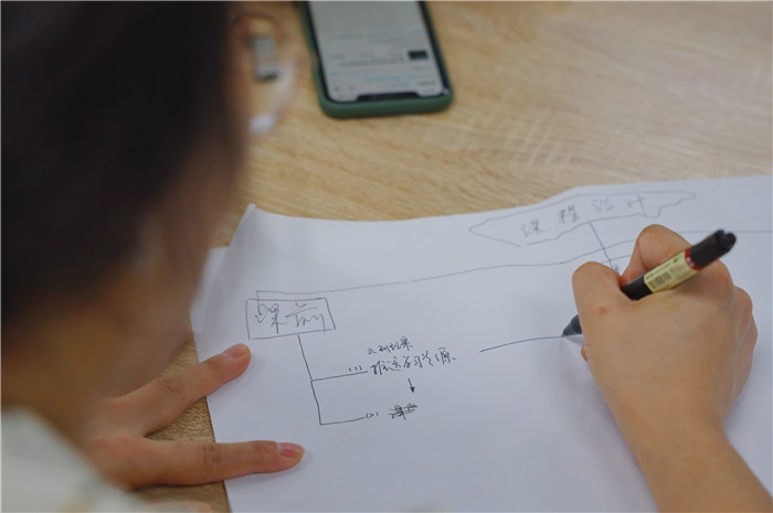 活动过程中,李老师还引导在座老师分组行动,选出组内一名老师的教案对其进修完善,完成15分钟左右的教学活动设计,绘制思维导图,并展示和分享。