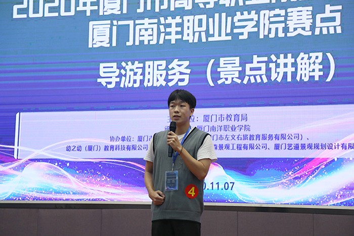 11月7日,在厦门南洋学院举行的2020 年厦门市高等职业院校技能竞赛“英语口语”“导游服务”“园林景观设计与施工”“学前教育专业教育技能”“大数据技术与应用”等5个赛项完美收官。全市127名参赛者在赛场上展现了深厚的基本功。