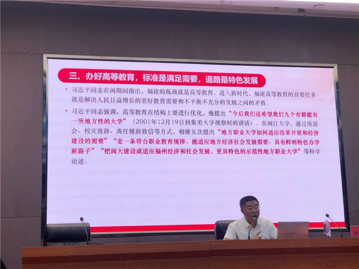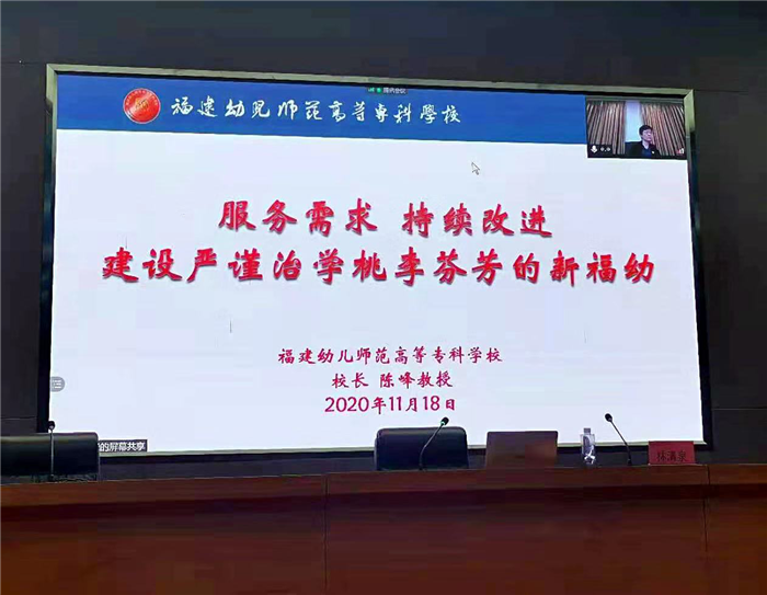陈峰教授以线上直播的方式作了题为“服务需求,持续改进,建设严谨治学桃李芬芳的新福幼”的报告,从微观的角度与参会人员分享了福建幼儿师范高等专科学校顺利通过师范专业认证的成功经验和具体做法。