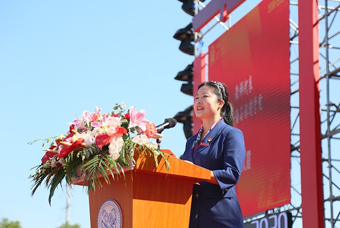 教师代表外国语与旅游学院丛义霞老师回顾过去11年南洋职业生涯,提出“南洋就是我们的家,我们为南洋添砖瓦”,表示将以更饱满的热情和团结创新的精神,继承南洋勤奋、求实、拼搏、向上的光荣传统,扎实工作,勤奋开拓;用激情与汗水,用青春和热血,续写南洋新的篇章,铸造南洋新的辉煌!