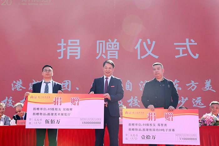 捐赠仪式。南洋取得的瞩目成就,既凝聚了全校师生的智慧和汗水,也包含了广大合作单位、兄弟院校、南洋校友等的关心与厚爱。