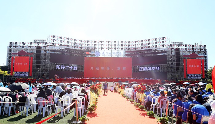 2020年11月26日,厦门南洋学院在学校田径场召开建校20周年庆祝大会。各级领导、长期关心支持南洋学院的社会各界代表、国内外高校代表、海内外校友代表和在校师生隆重集会,庆祝南洋学院建校20周年。
