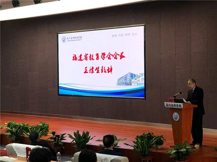 福建省教育学会会长、原厦门南洋学院校长王豫生在致辞中深入剖析了近十年来民办学前教育事业的发展,并从“营造良好发展环境、着力加强园所内涵建设、不断提升办学质量”等方面对民办幼儿园的发展提出了殷切希望。