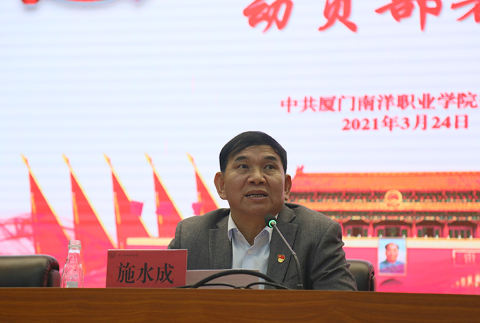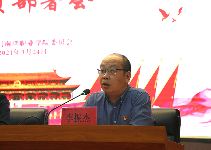 会上,党委委员李振杰宣读《中共厦门南洋职业学院委员会关于开展党史学习教育的实施方案》。学校党委将以党史学习教育为契机,与“再学习、再调研、再落实”活动结合起来,通过“三会一课 ”、主题党日、读书会、专题讲座、微党课等形式,潜心学习指定学习材料,开展党史知识竞赛、红色记忆、“我为师生办实事”、庆祝中国共产党成立100周年系列活动等,召开专题民主生活会、组织生活会,以丰富多彩的活动形式覆盖每个支部,每名党员,每位入党积极分子,迅速掀起学习党史教育的热潮。