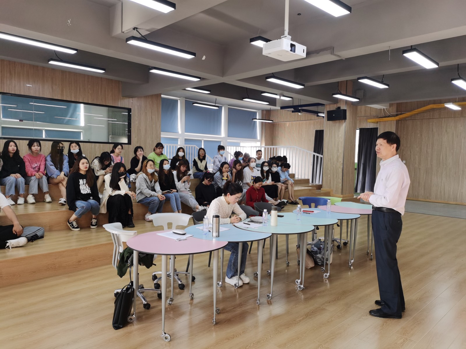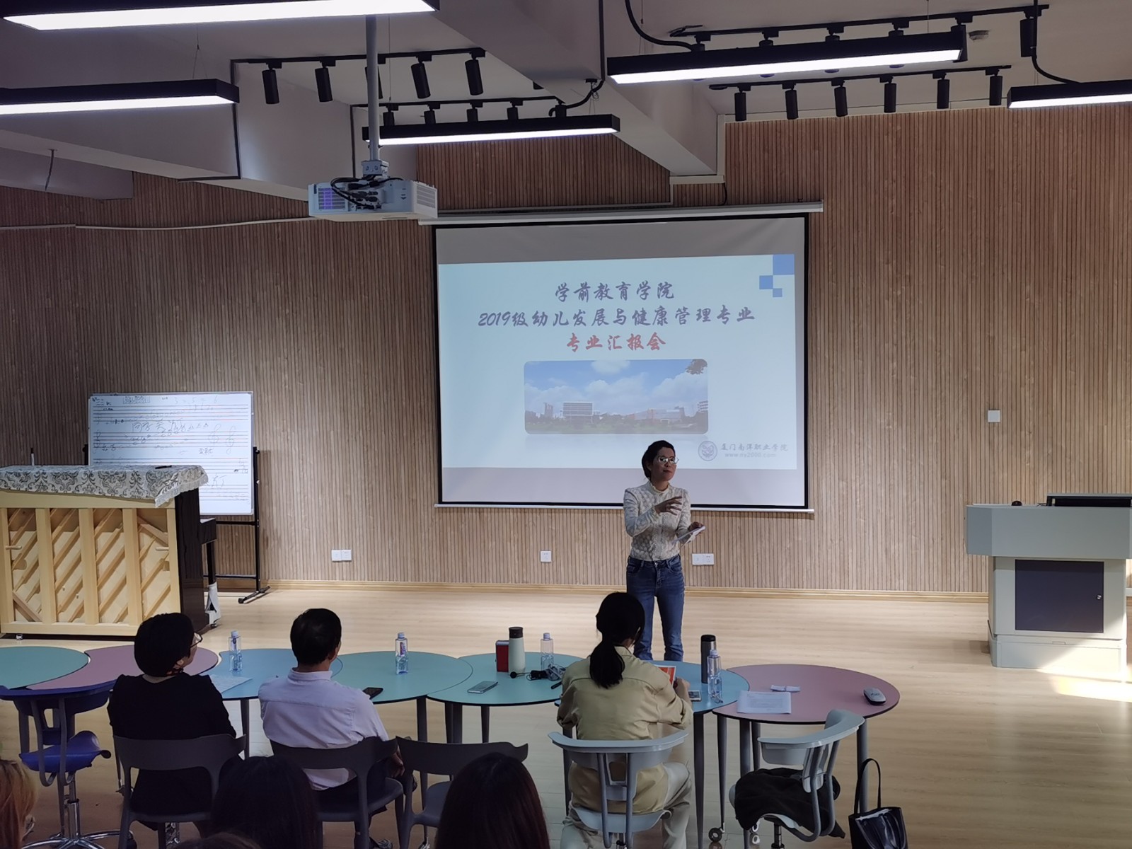昨日(4月12日)下午,我校学前教育学院校企合作模式创新试点——“幼儿发展与健康教育专业”第一组见习总结会及专业汇报会在教学楼A栋举行。学前教育学院教师,2019级、2020级幼儿发展与健康管理专业全体同学参加会议。