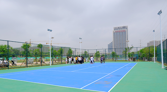 6月9日,从后勤保卫处传来好消息,我校新建的五个篮球场、四个网球场和一个排球场,将在一周内全部完工。