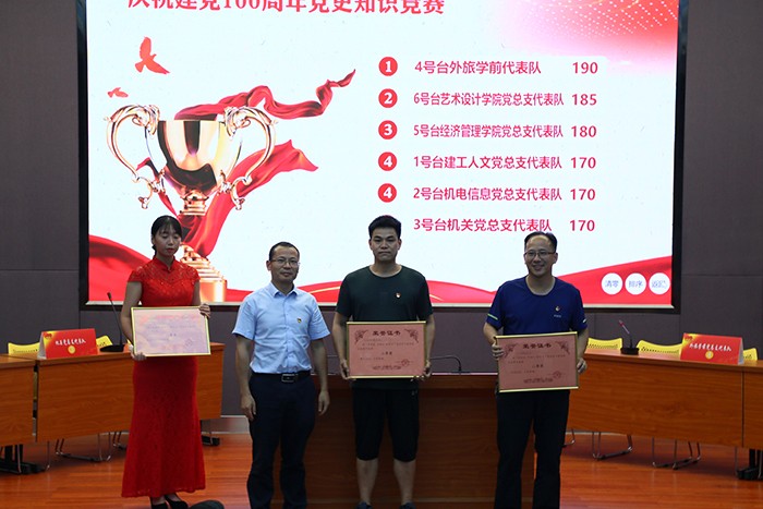 活动结束后,施水成书记对比赛进行了点评。他首先对本次比赛的成功举办表示了充分的肯定,认为这次竞赛准备充分、形式新颖、气氛活跃。通过知识竞赛活动,重温党的历史、牢记历史使命,加深了全校师生党员对党史的学习理解和消化吸收,达到推进党史学习教育活动走深走实的良好效果。同时,进一步培养师生的团结精神和竞争意识,不断增强团队凝聚力和向心力。他指出,党史学习教育应是日积月累、由浅入深的过程,全体师生党员一定要全面系统学、联系实际学,既要学史明理、学史增信、学史崇德、学史力行,也要持之以恒努力弘扬中国共产党人开天辟地、敢为人先的首创精神,坚定理想、不折不挠的奋斗精神,立党为公、忠诚为民的奉献精神,从党史学习中汲取智慧和力量,并将其转化为“与祖国共奋进、与学校同发展”的鲜活源泉,为南洋的健康发展、科学发展、和谐发展贡献智慧和力量。