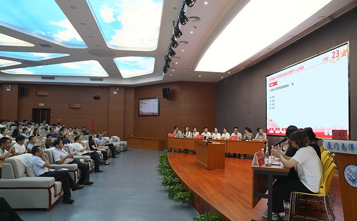 为持续深化党史学习教育,以实际行动和优异成绩庆祝中国共产党成立 100 周年,6月16日下午,我校在仙岳报告厅举办了“学党史 守初心 跟党走”党史知识竞赛。学校董事长、校长鲁加升,党委书记施水成,纪检委员鲁晓芹,统战委员钟石根,组宣委员李振杰,青年委员蓝德森出席本次活动,全体师生党员观看比赛。现场共6支党总支代表队、18人参加比赛。