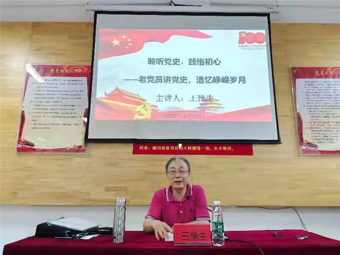 为推进党史学习教育走深走实,切实发挥好党员领导干部的引领表率作用,引导全体党员学党史、悟思想、办实事、开新局,6月23日下午,老党员原厦门南洋学院校长、现任教育研究院院长王豫生同志为外旅学前党支部全体师生带来了一场精彩生动的“聆听党史,践悟初心”的党课。