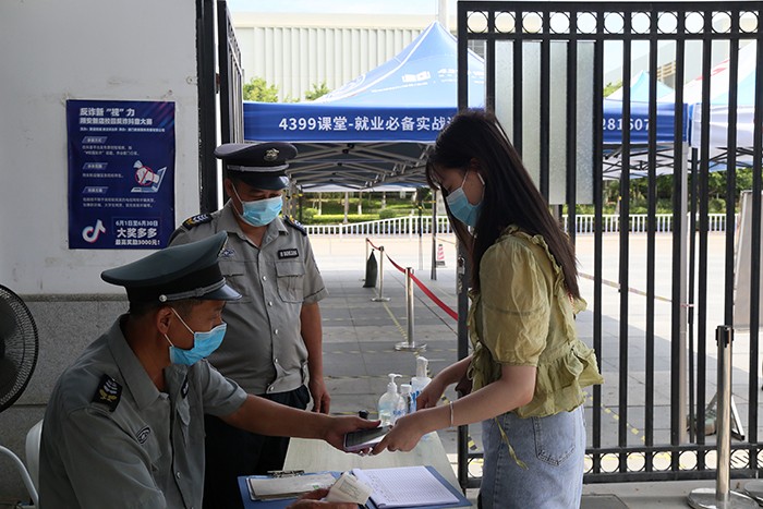 后勤保卫处按照学校疫情防控应急演练方案,组织学校相关部门对新生入校的场景进行了实战演练,重点对进入校门体温检测、身份信息登记、外来车辆进入、校园消杀等相关环节进行了模拟。整个演练过程高效、有序,每个演练人员按照既定的方案进行分工合作,协同配合,有序地完成了演练工作。