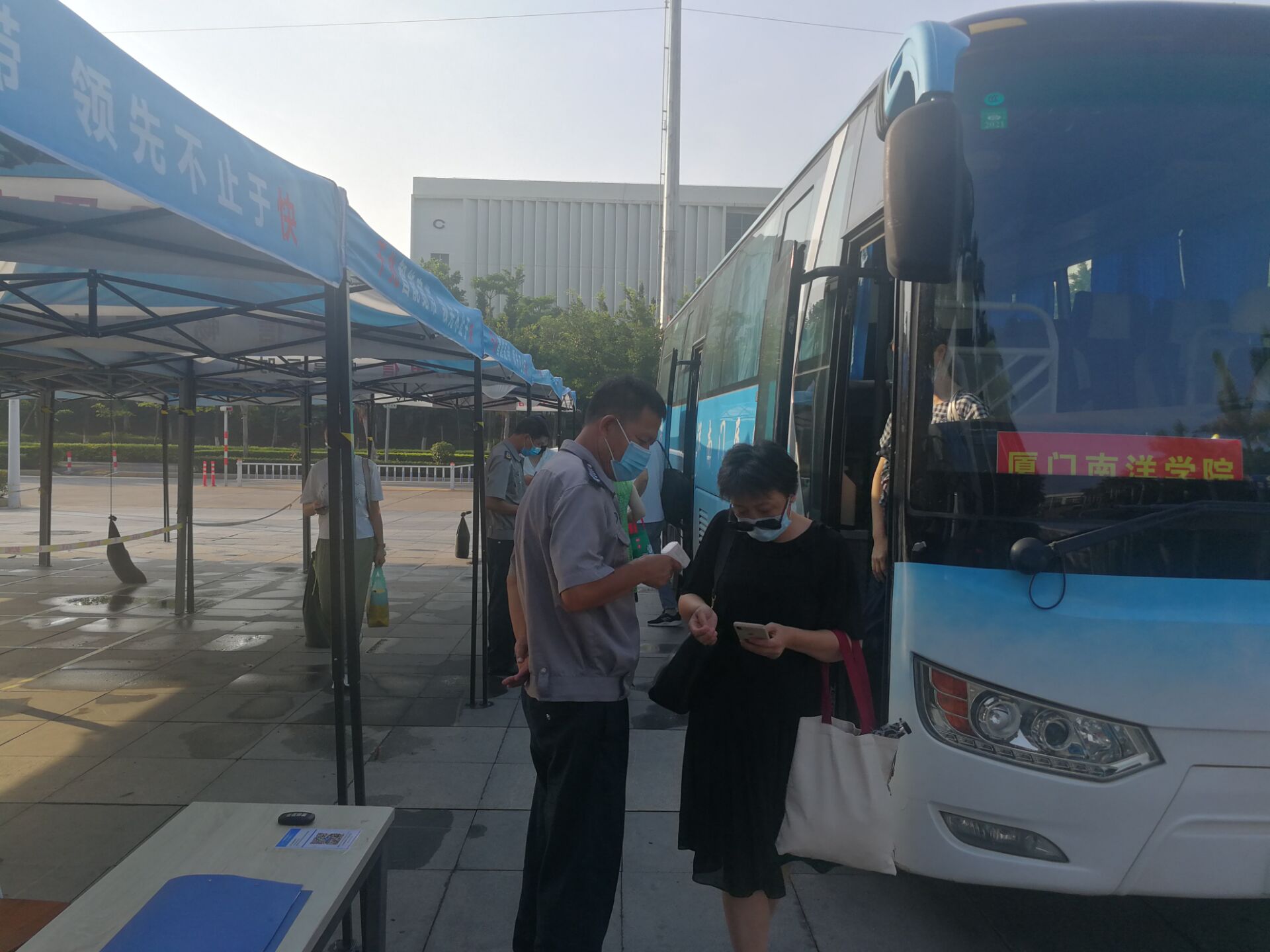 “您好,请出示下您的健康码和行程卡。”“您的体温正常,谢谢配合。”
