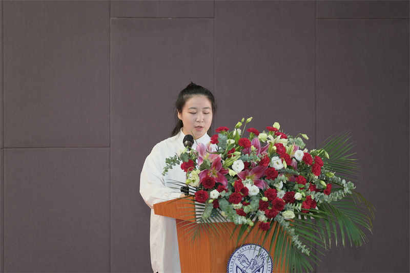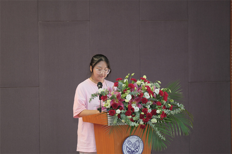 教师代表外国语与旅游学院许爱云老师引导新生大学三年要学会静心学习和精细化地管理自己,“机会是给有准备的人”,要秉承“勤奋、求实、拼搏、向上”校训精神,在青春梦想的道路上始终保持良好心态,以优异的成绩回报璀璨的青春,蜕变成自己想要成为的样子。