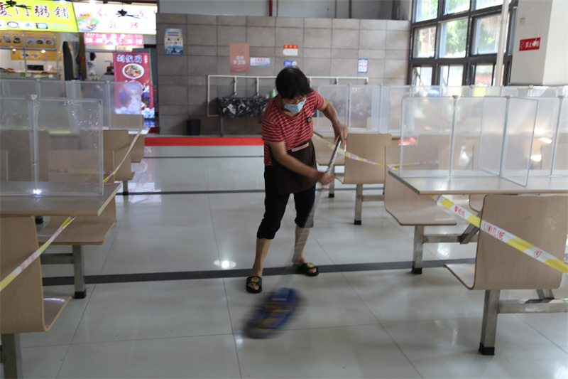 “食堂一定要进行彻底的清理和消毒,保证大家舌尖上的安全。”后勤保卫处人员井然有序地对食堂进行了一次全方位的消毒清扫工作,及时清运垃圾,不放过任何一个死角,给广大师生提供了一个干净卫生的用餐环境,避免病从口入。
