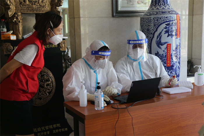 广大党团干部示范带头,积极投身核酸检测防控一线志愿服务工作,做好个人防护,同心同力为全员核酸检测工作奉献一份力量。
