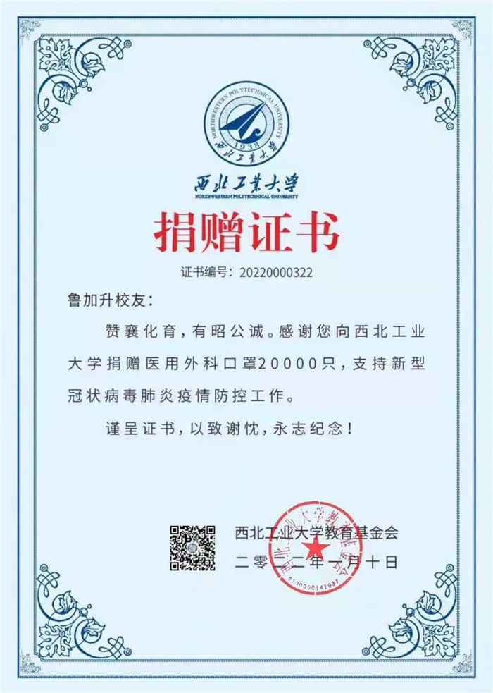 在母校疫情的关键时刻,他将一份沉甸甸的爱心捐赠给自己曾经学习的自动化学院!他第一时间联系厂家和车辆并以最快的速度将20000只口罩从厦门连夜专车运往陕西省西北工业大学。不仅如此,他还发动厦门校友共同为母校捐赠。