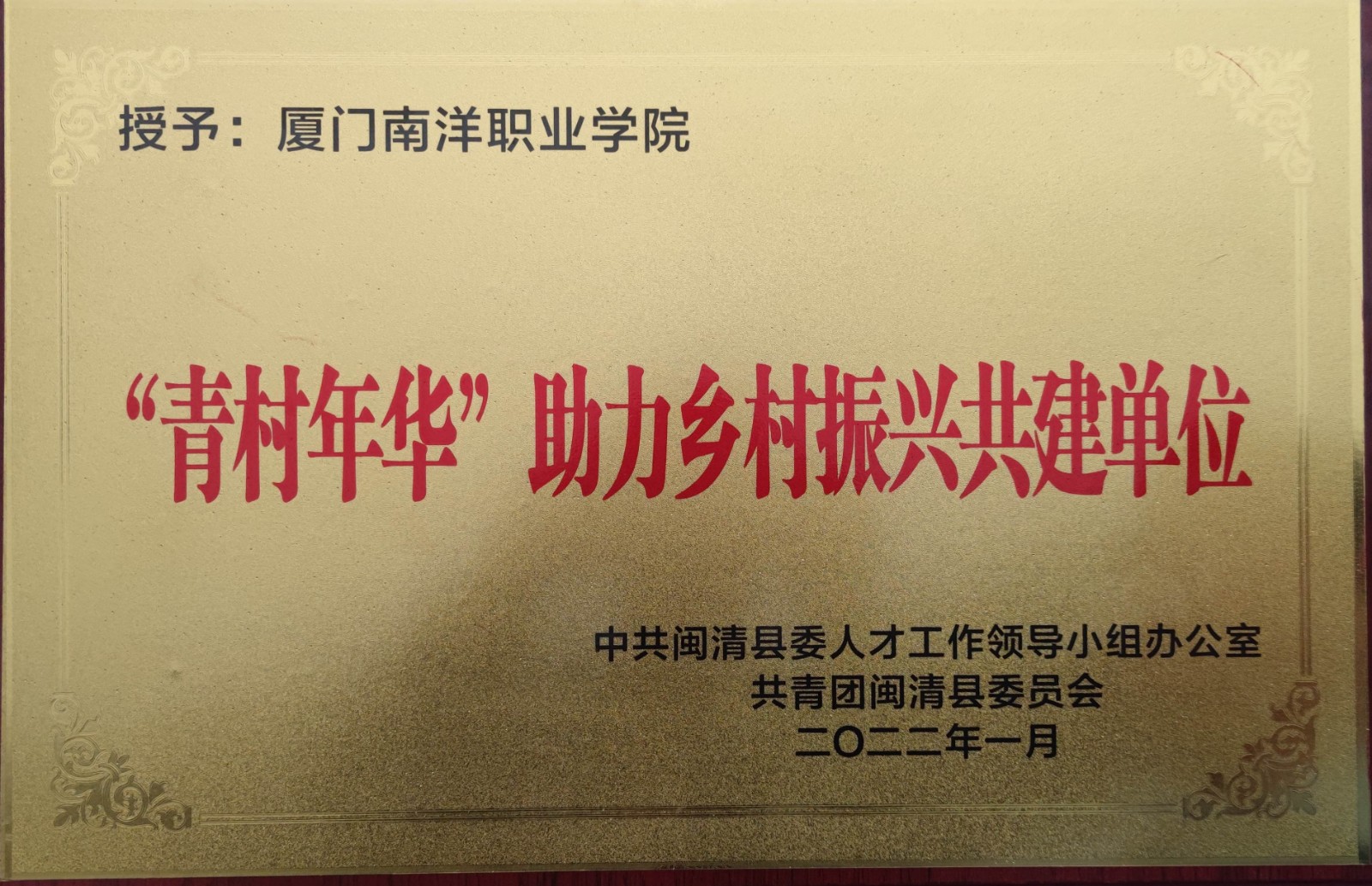 开幕式上,我校被授予“青村年华”助力乡村振兴共建单位牌匾;我校艺术设计学院广告教研室主任王莉副教授、原三创学院江老师被聘为“乡村振兴咨询师”“‘青村年华’助力乡村振兴青年创业导师”。
