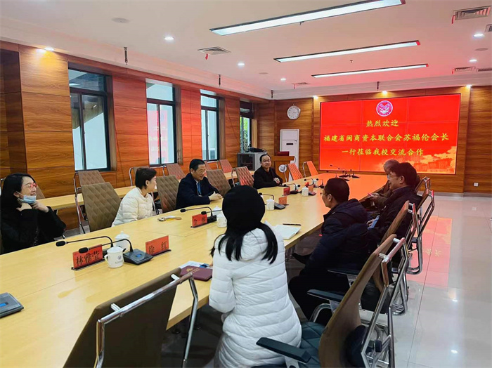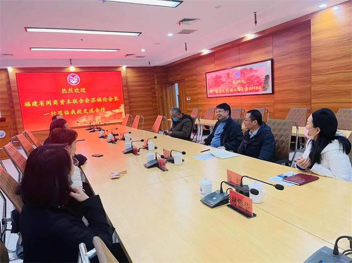 2月22日,福建省闽商资本联合会会长苏福伦一行来我校参观座谈。董事长、校长鲁加升和有关部门负责人热情接待。