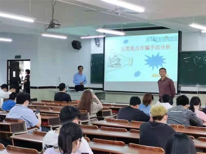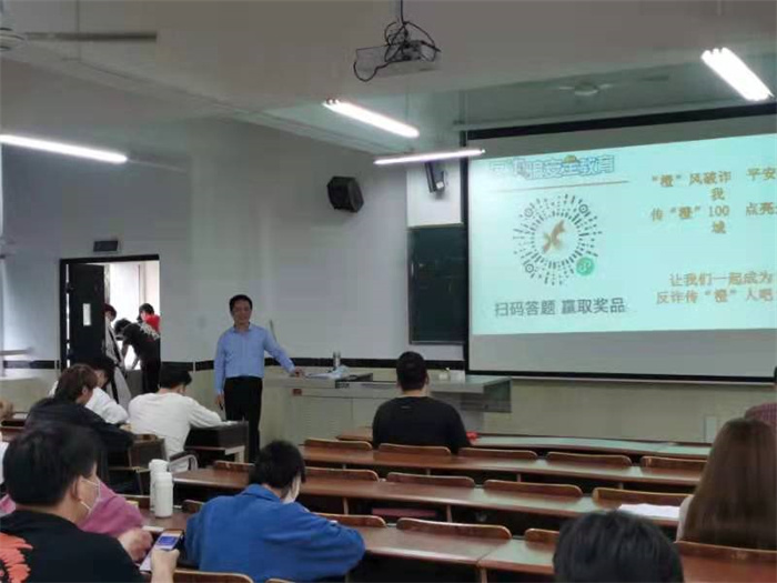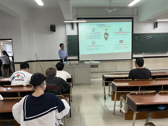 在活动中,翔安区反诈志愿者联盟队员、我校保卫科林辉城同志,从网络贷款类、冒充客服类、兼职刷信誉类、网上购物类、网络投资赌博类等五类重点诈骗手法,结合自己工作生活中遇到过的一些同事、学生遭遇的被诈骗案例,向现场人员,介绍了诈骗分子的常用手段、辨别诈骗的实用技巧,并提醒大家不要轻易将个人资料、银行卡号、存款密码等信息告知他人,如遇到可疑情况和疑似诈骗电话时,及时拨打报警电话。