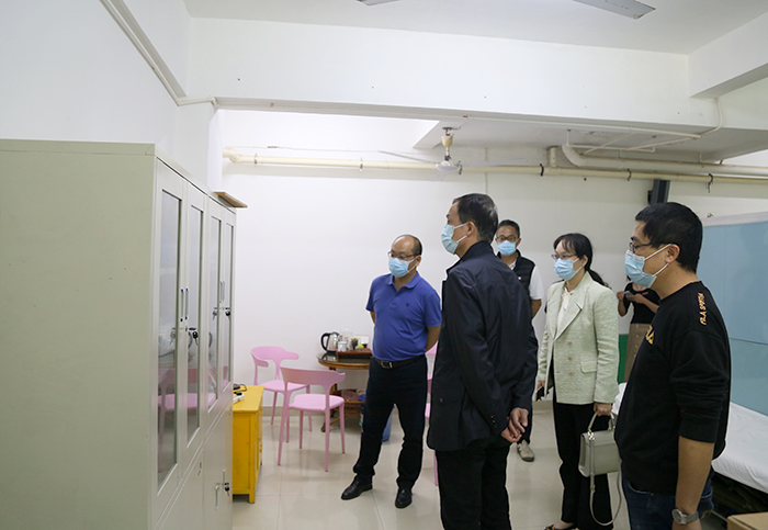 许志坚处长一行实地考察了食堂、快递中心、医务室、隔离区等地,查看防控举措、舆情监管、应急管控能力等情况。他肯定了南洋的疫情防控工作,尤其是对重点人群进行三天两检、足不出户、线上教学;增派处级干部加强校门管控等举措的快速反应。他指出,学校要继续坚定信心、保持定力、持之以恒,从严从紧从实抓好学校疫情防控工作,根据最新防控要求完善“两案九制”,扎实做好核酸检测和师生每日晨午晚检健康监测,进一步加强引导学生佩戴口罩、食堂餐桌隔板设置、垃圾分类等工作,助力打赢这场全民战“疫”。