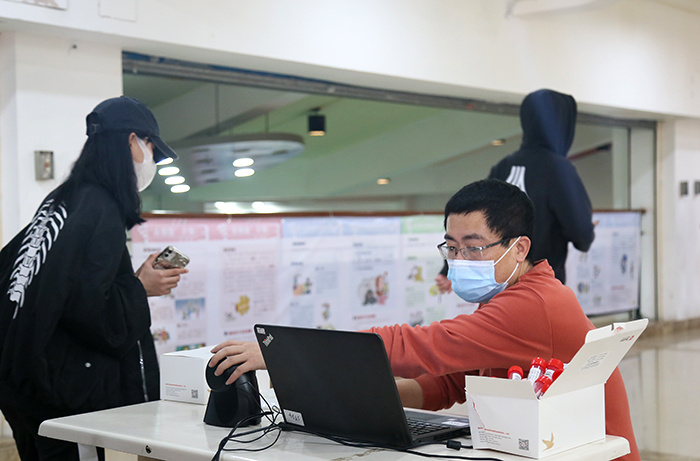 来不及多想的康医生集多方力量多管齐下,经过一个多小时的沟通,终于联系上了一位刚结束海沧全员核酸检测工作的医护人员愿意来校进行检测。2:30,医护人员到位,康医生又担起了信息录入和采集工作,协助完成了泉州旅居史师生的核酸检测。