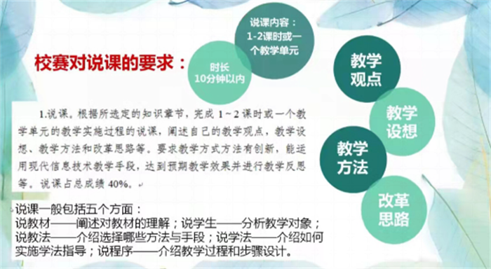 为促进青年教师发展与成长,3月30日我校教育学院围绕校第八届中青年教师课堂教学技能竞赛开展了教学技能竞赛的线上培训活动。