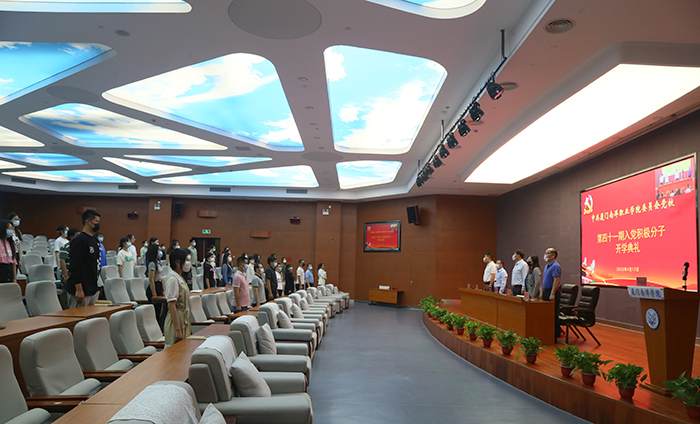 4月13日下午,我校在仙岳报告厅以线上线下相结合的方式举行第41期入党积极分子培训班开学典礼。党委书记施水成,党委委员鲁晓芹、钟石根、李振杰、蓝德森出席典礼;第41期入党积极分子、党员代表参加典礼。党委委员、党校副校长李振杰主持典礼。
