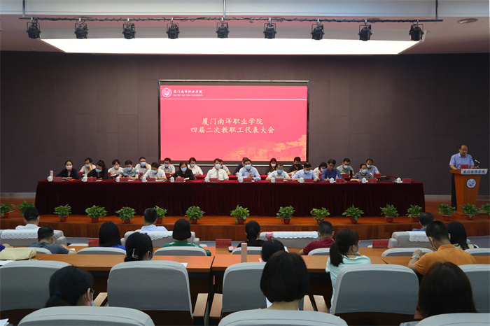 4月25日,厦门南洋职业学院四届二次教职工代表大会在仙岳报告厅隆重举行。学校全体正式代表、列席代表出席会议。